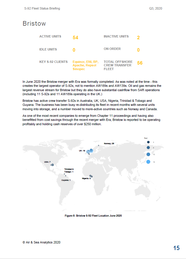 This briefing is essential for anyone trying to track the S-92 market and follow trends in market demand. It is also ideal for benchmarking helicopter operators in the Heavy offshore crew transfer segment.