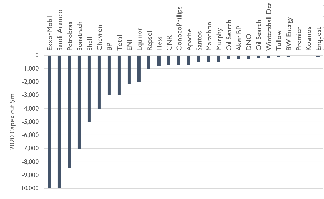 In the last few weeks, oil companies have announced substantial cuts to Capex. The selected companies alongside (selected for their exposure to offshore activity) have cut 2020 budgets on average between 20-30% for the majors and as much as 48% for independents such as Enquest.
